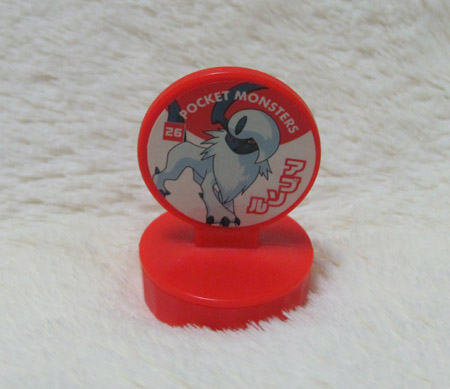 One of the rarest Absol items out there, I am very grateful to have this stamp. Stamp Retsuden are infamous for becoming rare fast, especially the older Advanced Generation sets, and this stamp came from the very first set. EnSky also makes KeshiPoké, which also have excessively-rare AG sets. (I assume an Absol was made, but I've never even seen a photo of it.) If you come across any AG Retsuden stamp (distinguishable from DP and BW sets by their layout), consider yourself very lucky.