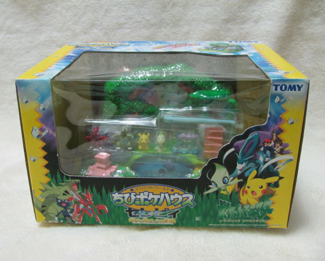 This is a gorgeously-detailed playset that includes Celebi on a swinging arm, a background that rotates between various scenes including Golem Celebi and the many timetravelling Celebi, various moving parts, and best of all, Suicune that moves across the lake with a magnet.